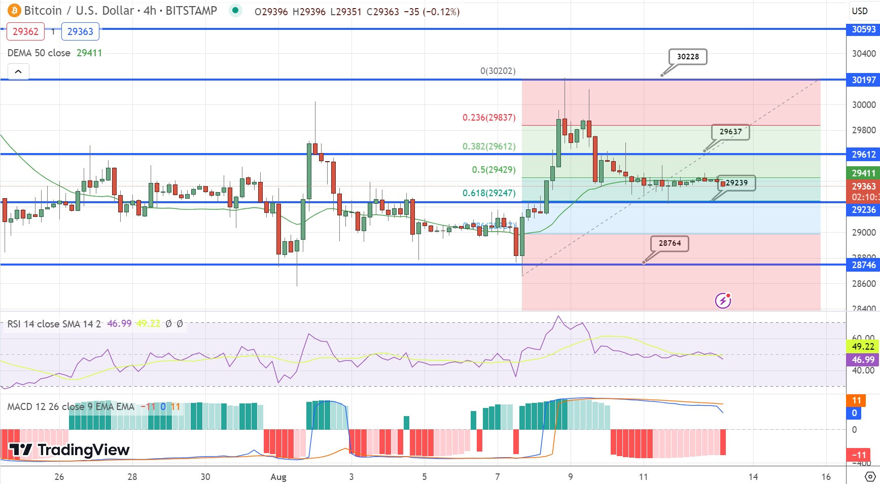 The support level for Bitcoin, near $29,200 remains steady, and its technical outlook has not changed.